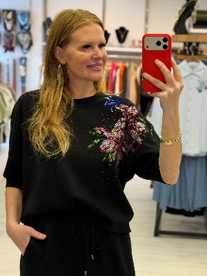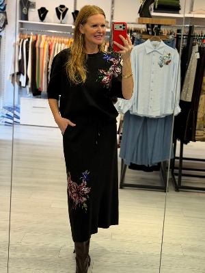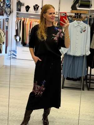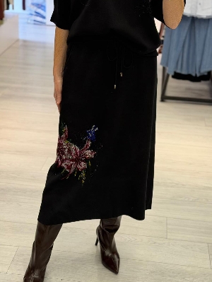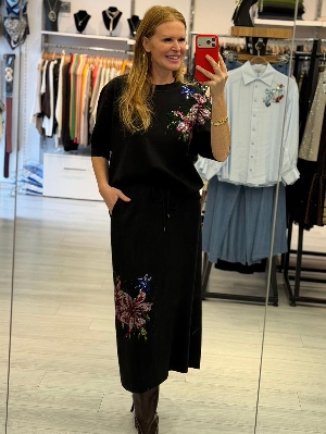 İtalyan Taş Detay Etekli 2` Li Çelik Örme Takım Siyah