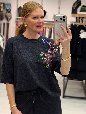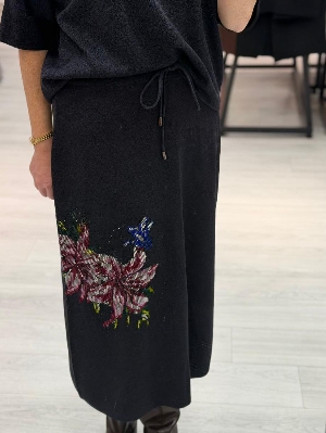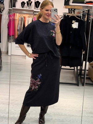 İtalyan Taş Detay Etekli 2` Li Çelik Örme Takım Larcivert