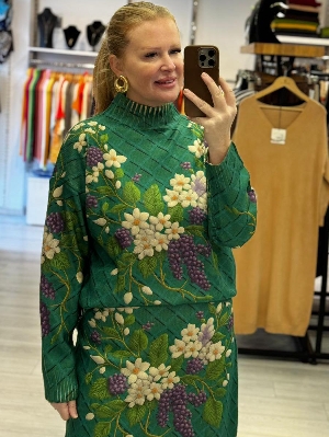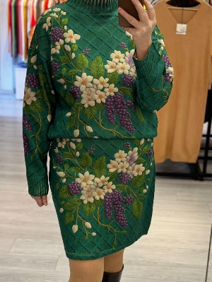 İtalyan Yeşil Renk Etekli 2` Li Triko Takım