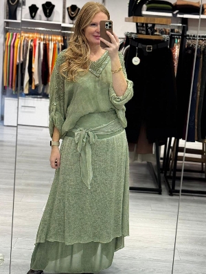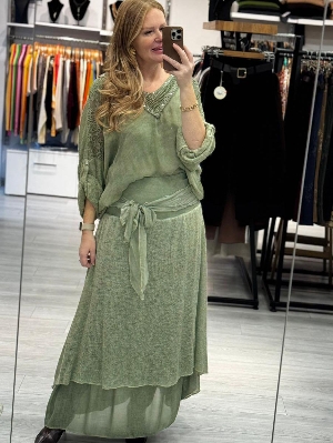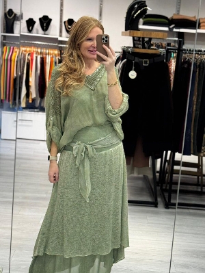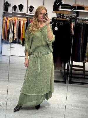 İtalyan Yeşil Renk İpek Ve Angora Takım