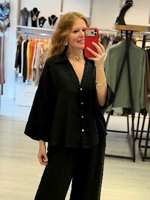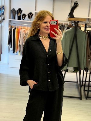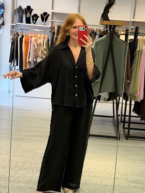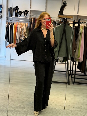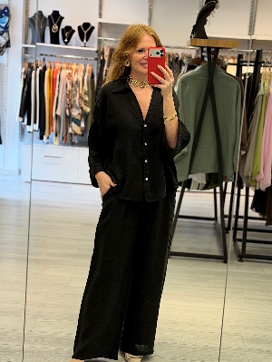 Pantolonlu Siyah Renk Keten Takım