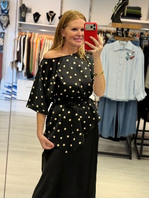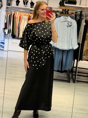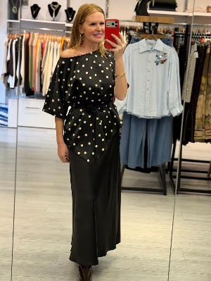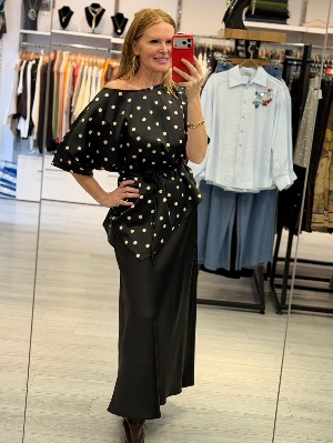 Saten Kumaş Asimetri Detay Puantiye Takım Siyah