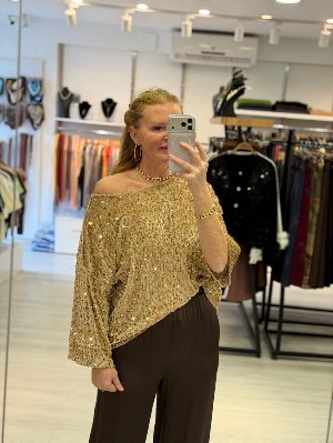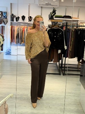 İtalyan Bal Renk Kadife Üzerine Payet Bluz