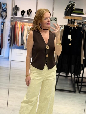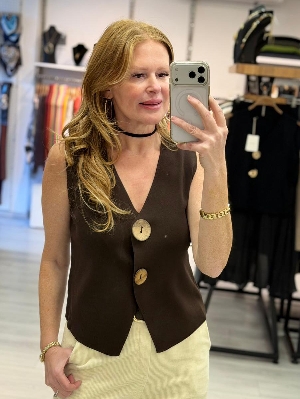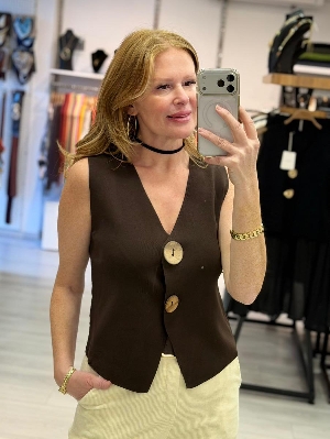 İtalyan Düğme Detay Kahve Renk Çelik Örme Triko Yelek