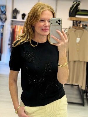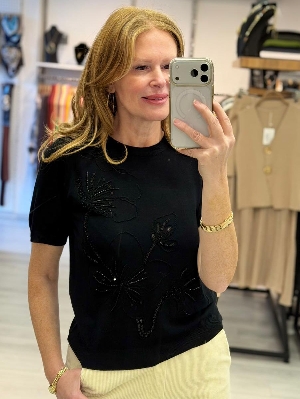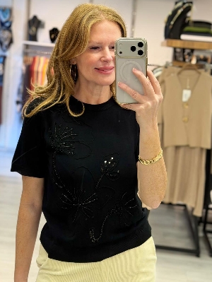 İtalyan İş Detay Siyah Renk Çelik Örme Triko Bluz