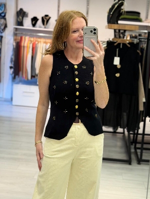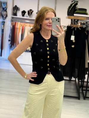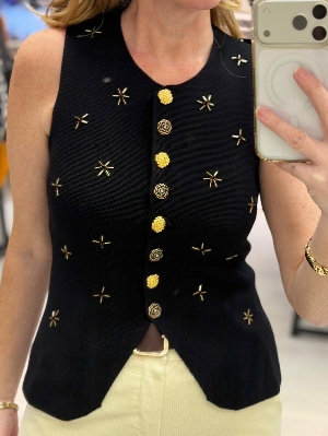 İtalyan İş Detay Siyah Renk Çelik Örme Triko Yelek