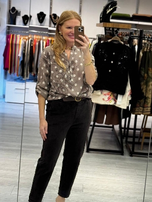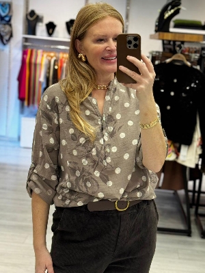 İtalyan Puantiye Detay Vizon Gömlek