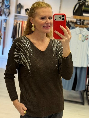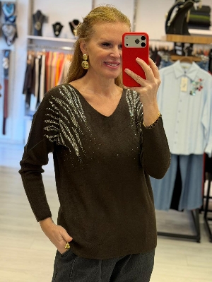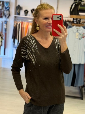 İtalyan Taş Detay Kahve Renk Triko