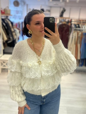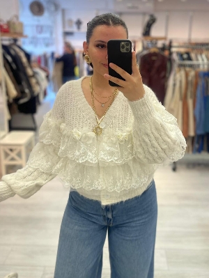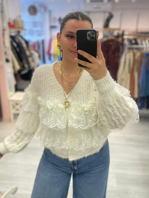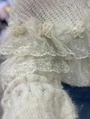 İtalyan Tül Ve İnci Detay Alpaka Yün Hırka