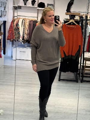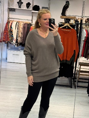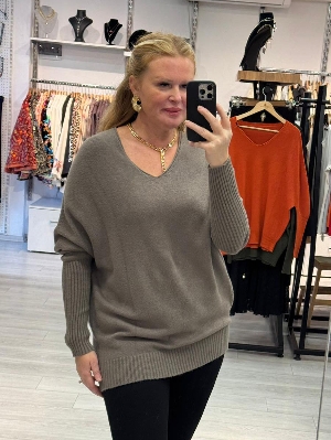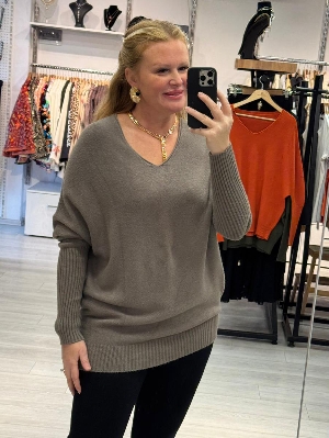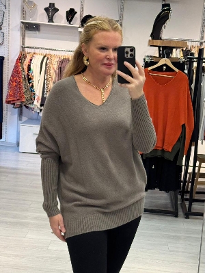 İtalyan V Yaka Vizon Renk Kazak